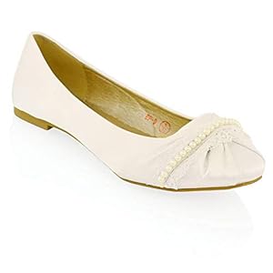 ELEGANT LADIES SATIN LACE PEARL WEDDING BRIDAL IVORY & WHITE BALLERINA FLAT PUMPS