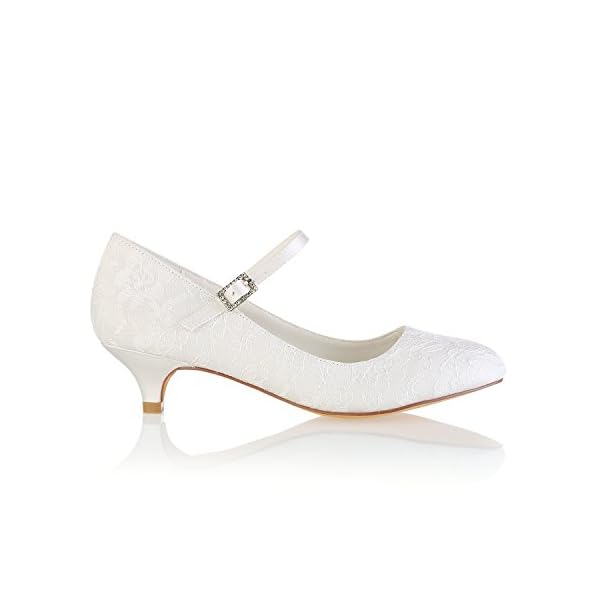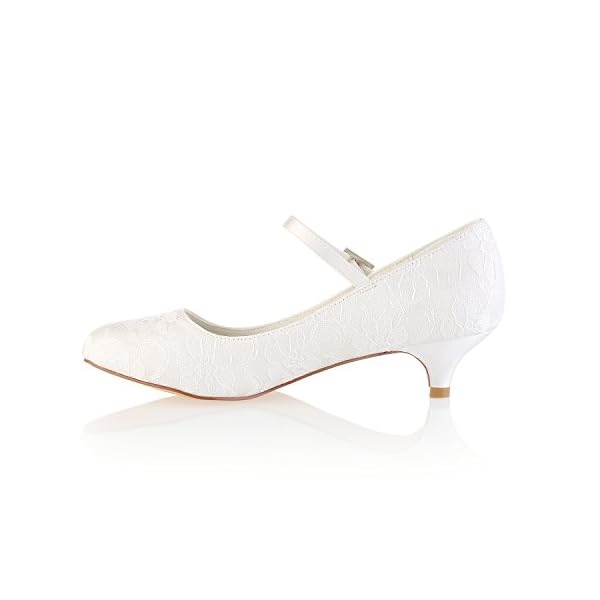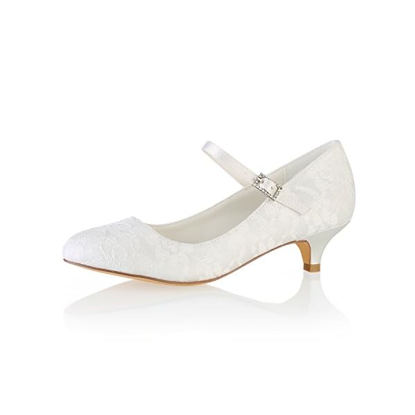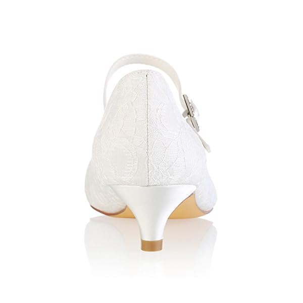 Emily Bridal 011-25 Women’s Wedding Shoes Closed Toe 1.57 Inches Kitten Heel Lace Satin Pumps with Buckle Bridal Shoes