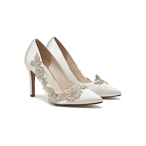sharply-pointed toe, a streamlined silhouette embellished with intricate floral beading and an elegant stiletto heel